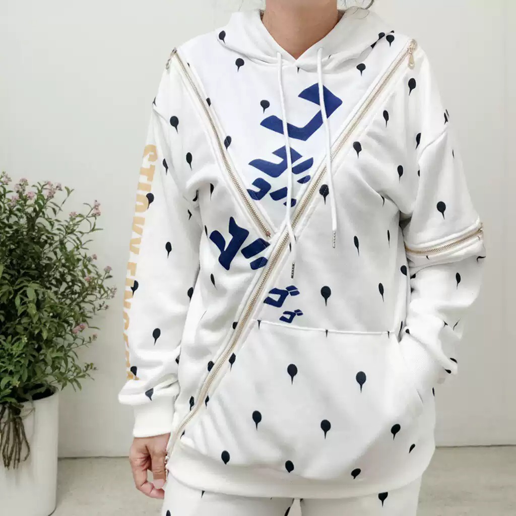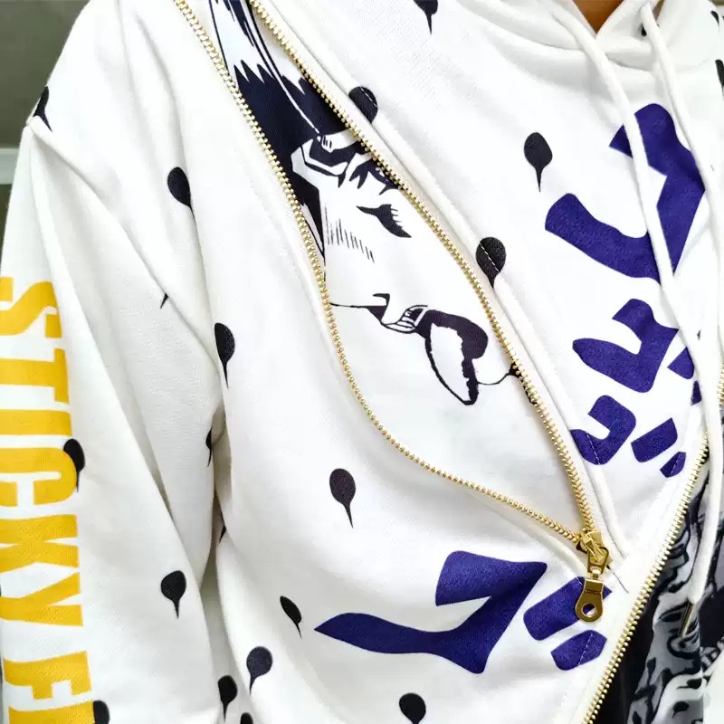 ดีไซน์สุด Iconic: เสื้อฮู้ดสีขาวสะอาดตา ตัดกับลายซิปสีทองอร่ามที่เป็นเอกลักษณ์ของบรูโน่ บูเชลลาตี้ พร้อมลายพิมพ์สุดประณีตด้านหลัง ที่ถ่ายทอดความสง่างามและความแข็งแกร่งของหัวหน้าทีมคนนี้ได้อย่างสมบูรณ์แบบ