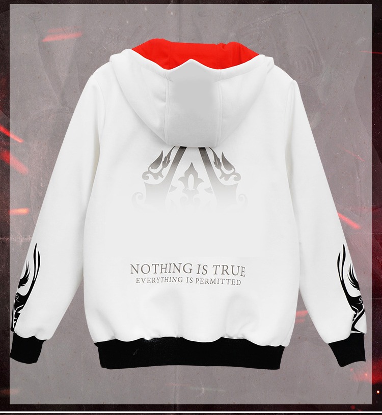 เสื้อแจ็คเก็ตแบบมีฮู้ด Assassin's Creed Nothing Is True (สีขาว แดง)