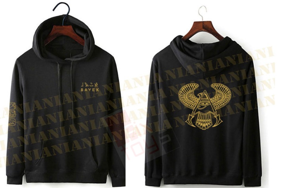เสื้อฮู้ดกันหนาวผ้า Cotton ตัวเสื้อมีให้เลือก 2 แบบ แบบสวมหรือแบบซิป เป็นเสื้อจากเกมส์ Assassin's Creed Origin โดยพิมพ์ด้วยตัวอักษรอียิปต์โบราณ HIEROGLYPHIC ด้านหน้าพิมพ์ชื่อตัวเอกของภาค BAYEK และด้านหลังและแขนเป็นลายภาพอียิปต์โบราณ