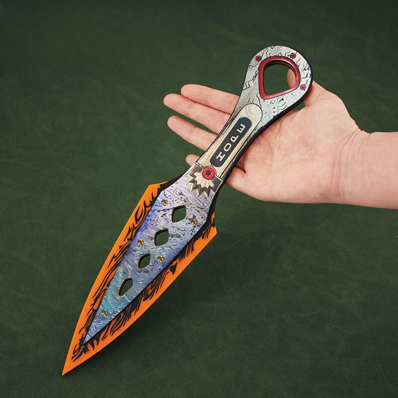 โมเดลอาวุธมีด Apex Legends Wraith Heirloom Wraith Kunai Hope’s Dawn Kunai Heirloom เป็นโมเดลอาวุธมีดที่สร้างจากเกม Apex Legends โดยได้รับแรงบันดาลใจจากตัวละคร Wraith โดยมีชื่อเรียกอย่างเป็นทางการว่า "Hope’s Dawn Kunai Heirloom" โมเดลนี้มีอัตราส่วนขนาด 1:1 คือมีขนาดกว้าง 30 ซม. เป็นโมเดลที่มีความละเอียดสูงและสีสันสดใส โดยทำจากวัสดุ Acrylic และ ABS ซึ่งเป็นวัสดุที่มีความทนทานและแข็งแรง ทำให้โมเดลนี้มีความคงทนและน่าทึ่งมากยิ่งขึ้น