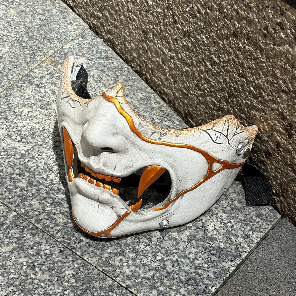 ดีไซน์สุดยูนีค: หน้ากากสีขาวแตก (#WhiteCracked) พร้อมรอยแยกสีทองคล้ายงานศิลปะ #Kintsugi ที่ดูเก่าแก่แต่ทรงพลัง