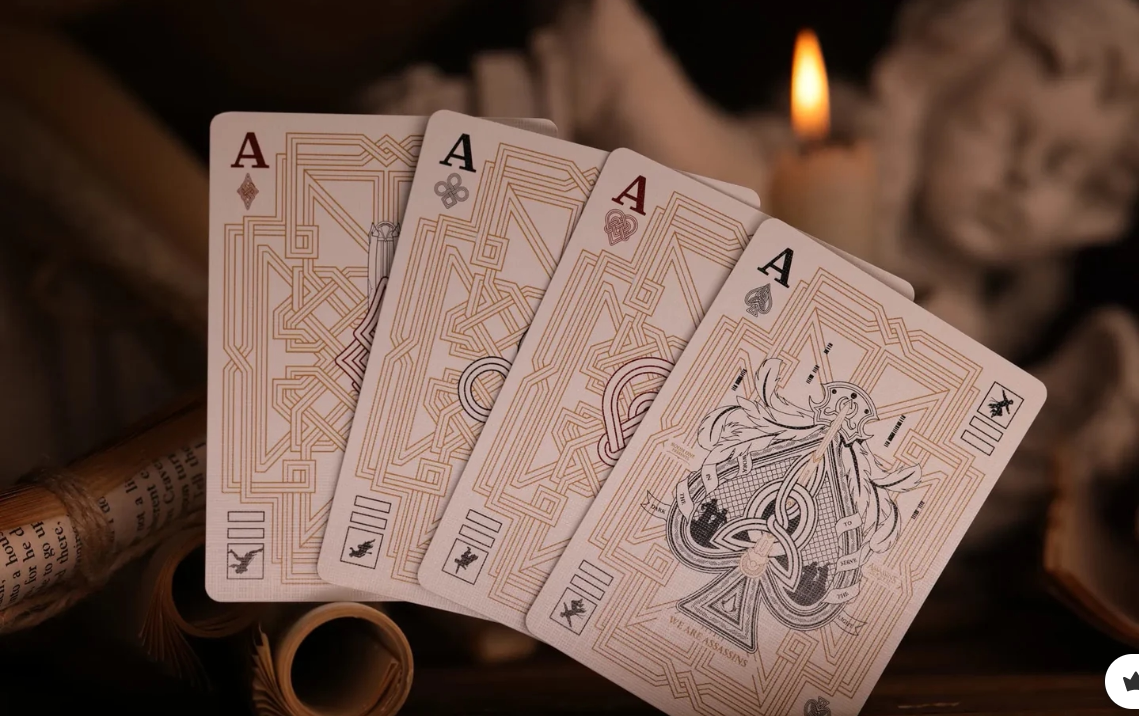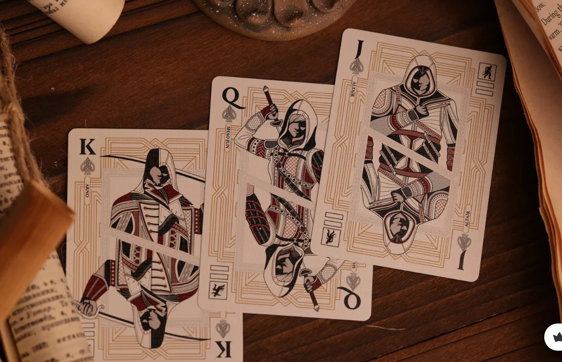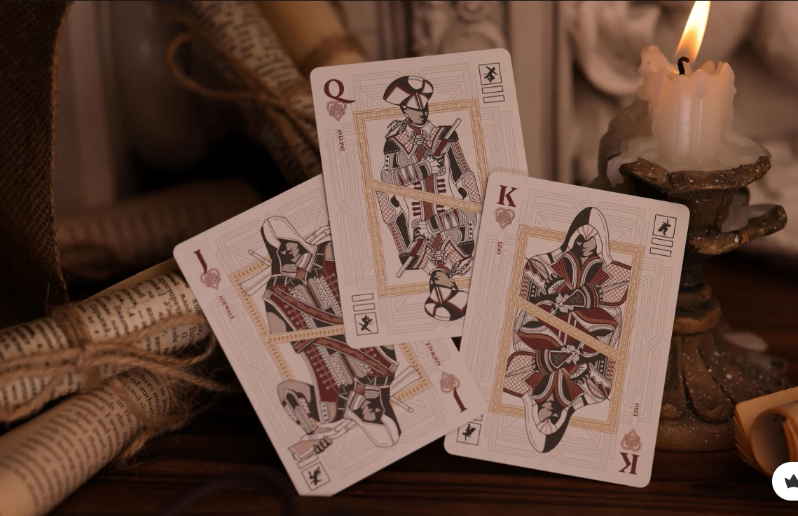 Exquisite Design: หน้าไพ่ทุกใบ (Custom Faces) ถูกออกแบบใหม่ทั้งหมด โดยมีตัวละครระดับตำนานอย่าง Altaïr, Ezio, Connor และคนอื่นๆ ปรากฏบนไพ่ J, Q, K